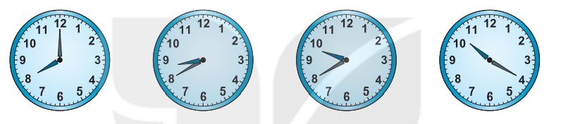 Dưới đây là đồng hồ chỉ thời gian bắt đầu của 4 môn học trong buổi sáng.