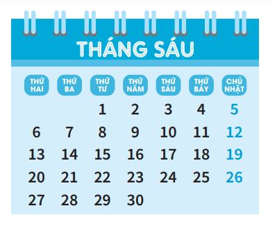 Quan sát tờ lịch tháng 6 rồi viết tiếp vào chỗ chấm cho thích hợp.