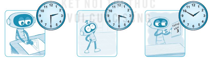 b) Rô-bốt học Toán lúc 2 giờ 30 phút, học Giáo dục thể chất lúc 3 giờ 30 phút, học Tiếng Việt lúc 1 giờ 50 phút.