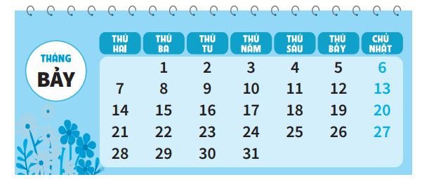 Quan sát tờ lịch tháng 7 rồi viết tiếp vào chỗ chẩm cho thích hợp.