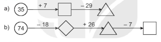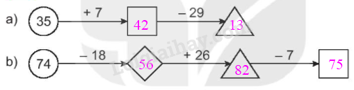 Thực hiện tính theo chiều mũi tên rồi viết kết quả thích hợp vào ô trống.