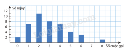 Trong nhiều ngày liên tiếp, chi Xuân ghi lại số cuộc gọi điện thoại mà chị nhận được mỗi ngày và biểu diễn kết quả thống kê trong biểu đồ dưới.