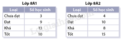 Bạn Thủy đã ghi lại trong hai bảng sau kết quả học tập Học kì 1 của học sinh hai lớp 8A1 và 8A2: