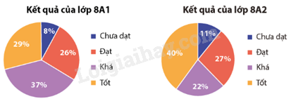 a) Sử dụng biểu đồ quạt tròn thể hiện rất rõ tỉ lệ giữa các nhóm đối tượng với toàn thể tập hợp đối tượng điều tra. Hai biểu đồ quạt tròn này giúp ta dễ dàng quan sát thấy từng xếp loại của học sinh so với kết quả của lớp 8A1 và 8A2.