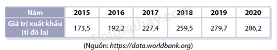 Giá trị xuất khẩu hàng hóa của Việt Nam giai đoạn 2015-2020 (làm tròn đến hàng phần mười) được thống kê trong bảng sau: