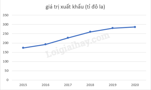 a) Vẽ một biểu đồ biểu diễn sự tăng trưởng trong xuất khẩu của Việt Nam.