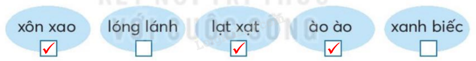 Đánh dấu tích vào ô trống dưới từ chỉ âm thanh.