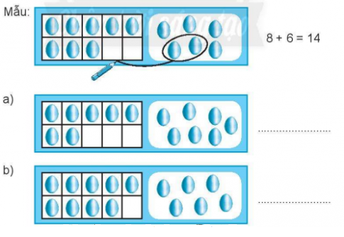 Bọ rùa thứ nhất có 7 chấm tròn, cần vẽ thêm 8 chấm tròn. (vì 7 + 8 = 15)