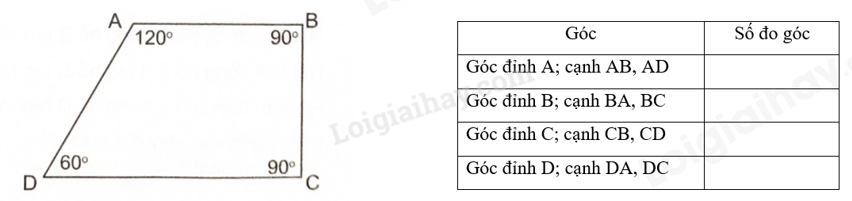 Quan sát hình vẽ rồi viết số đo các góc vào bảng