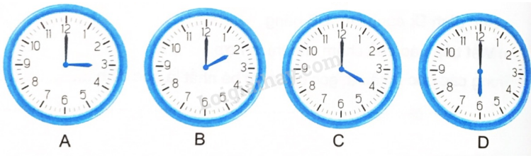Hai kim đồng hồ ở đồng hồ D tạo ra góc 180o