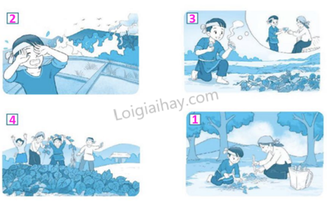 Sắp xếp các tranh theo đúng trình tự của câu chuyện Sự tích cây khoai lang.