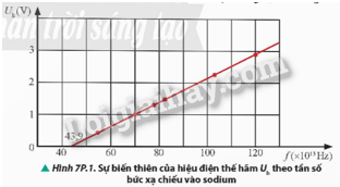 Hằng số Planck h có thể được xác định trong thực nghiệm bằng cách đo hiệu điện thế hãm đối với sodium (Hình 7P.1). Cho khối lượng và điện tích của electron lần lượt bằng 9,1.10-31 kg và -1,6.10-19 C.
