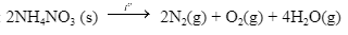 \(\begin{array}{l}{\Delta _f}H_{298}^0({H_2}O) = - 242(kJ/mol)\\{\Delta _f}H_{298}^0({O_2}) = 0(kJ/mol)\\{\Delta _f}H_{298}^0({N_2}) = 0(kJ/mol)\\{\Delta _f}H_{298}^0(N{H_4}N{O_3}) = - 365,6(kJ/mol)\end{array}\)