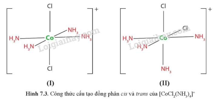 Chỉ ra đồng phân cis và trans của phức chất bát diện [CoCl2(NH3)4]+ ở hình 7.3