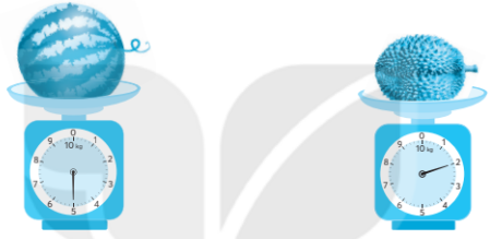 - Quả sầu riêng nhẹ hơn quả dưa hấu 3 kg (Vì 5 kg – 2 kg = 3 kg)