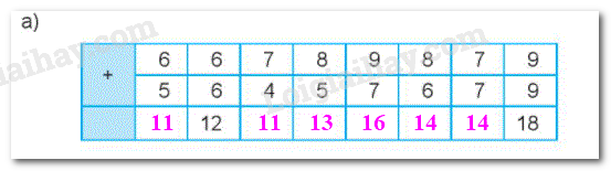 b) Các phép tính có kết quả lớn hơn 14 là: 9 + 6; 9 + 7; 8 + 9