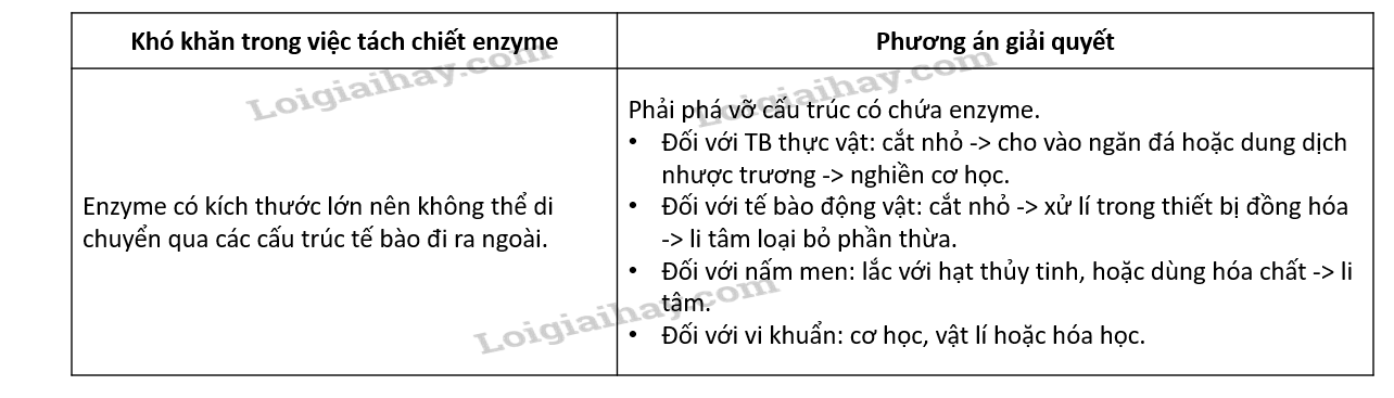 Việc tách chiết enzyme từ cơ thể sinh vật gặp khó khăn và các phương án được đưa ra để giải quyết những khó khăn là: