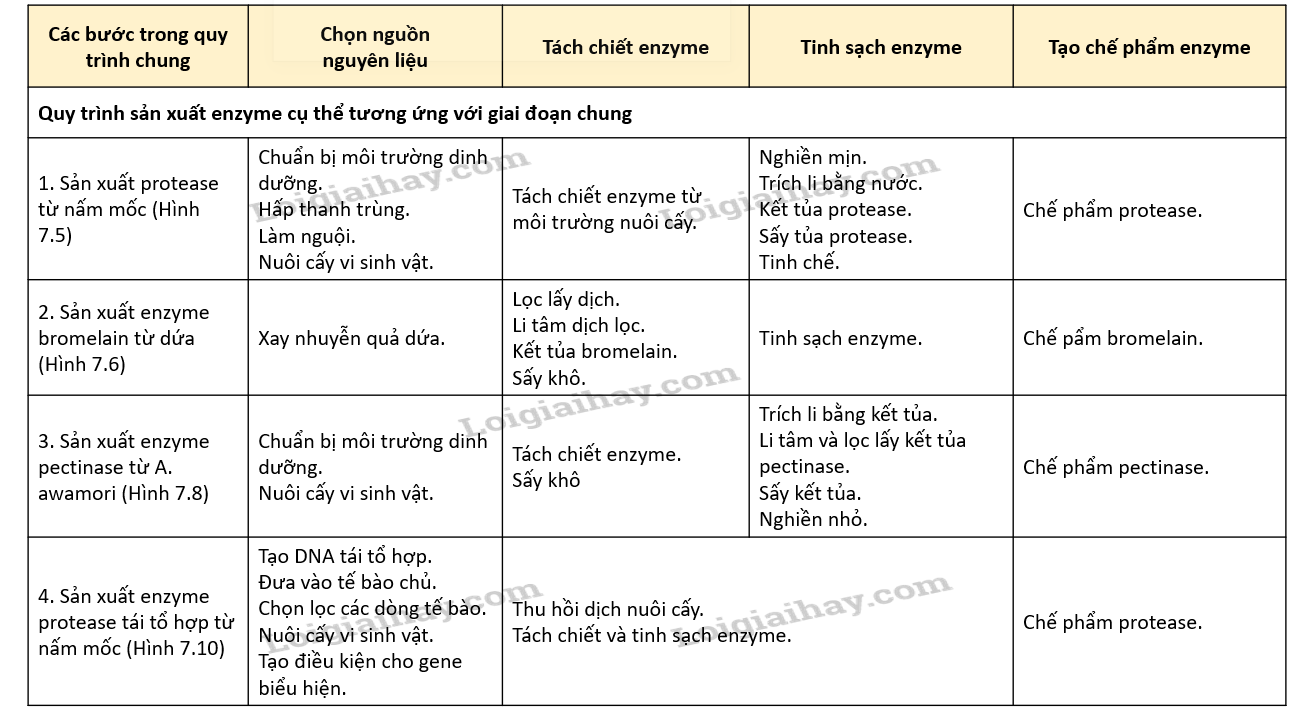 a) Mỗi giai đoạn trong quy trình sản xuất các enzyme tương ứng với giai đoạn nào trong Hình 7.3.