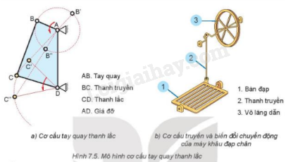 Quan sát và cho biết: Các bộ phận trong Hình 7.5b tương ứng với bộ phận nào trong cơ cấu ở Hình 7.5a?