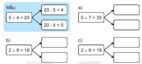 Viết phép chia thích hợp vào ô trống (theo mẫu).