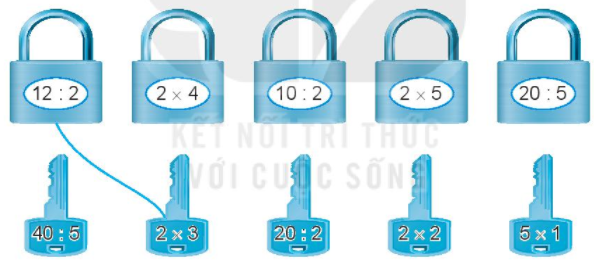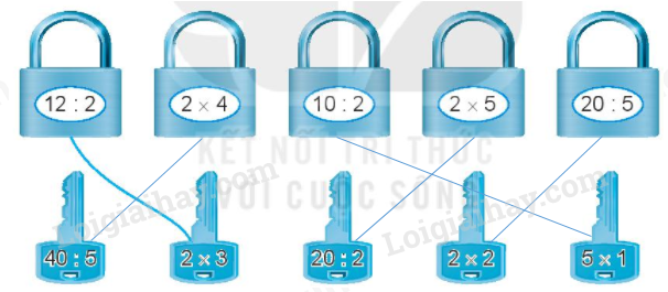 Em thực hiện tính nhẩm rồi nối chìa khóa với ổ khóa có kết quả phép tính giống nhau.