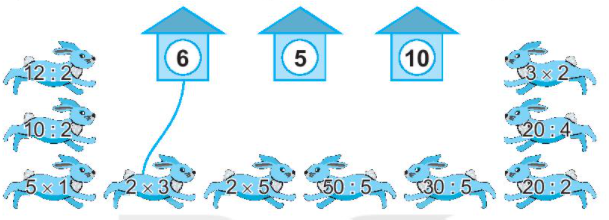 Em thực hiện tính nhẩm rồi nối mỗi con thỏ với chuồng có ghi kết quả phép tính giống nhau.