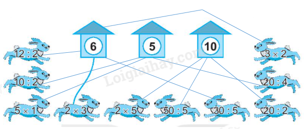 a) Nối mỗi con thỏ với chuồng nó được vào (theo mẫu).