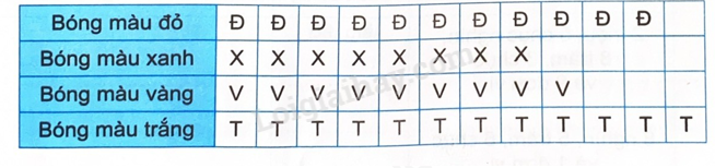 a) Mỗi loại bóng (theo màu) xuất hiện bao nhiêu lần?