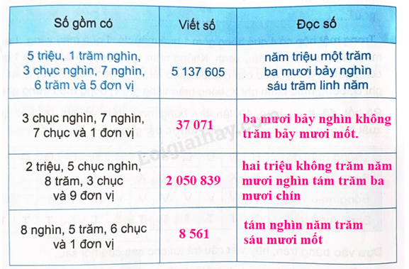 Dựa vào các đọc số (hoặc viết số) có tới ba chữ số theo từng lớp, lần lượt từ lớp triệu, lớp nghìn, lớp đơn vị.