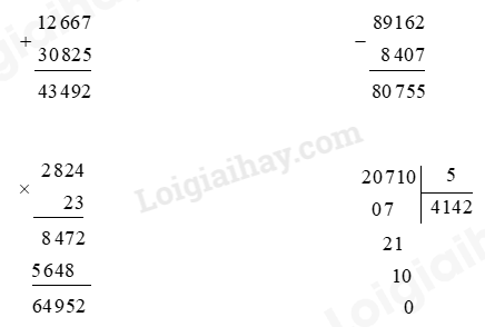 Đặt tính rồi tính.