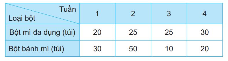 Cho bảng số liệu về số túi bột mì bán được trong 4 tuần của tháng 2 ở một cửa hàng tạp hoá.