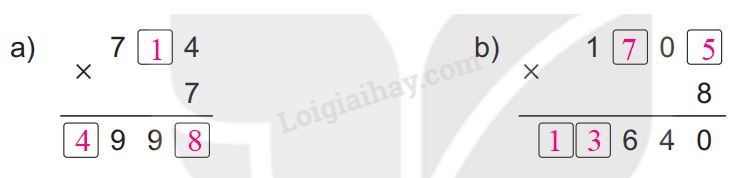 + Đặt tính sao cho thừa số thứ hai thẳng cột với chữ số hàng đơn vị của thừa số thứ nhất.