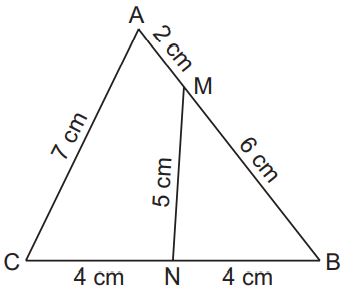 b) Chu vi hình tứ giác AMNC là 18 cm. (Vì 7 + 2 + 5 + 4 = 18 cm)