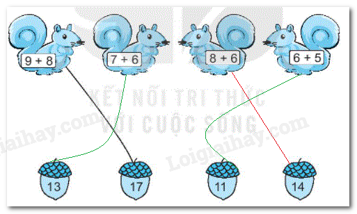 - Tính nhẩm kết quả phép cộng ghi trên mỗi chú sóc rồi nối với số tương ứng trên mỗi hạt dẻ.