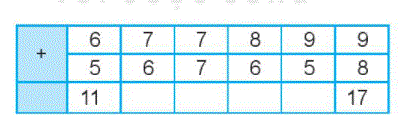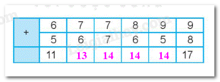 Tính nhẩm các phép cộng trong bảng trên rồi viết kết quả thích hợp vào chỗ chấm.