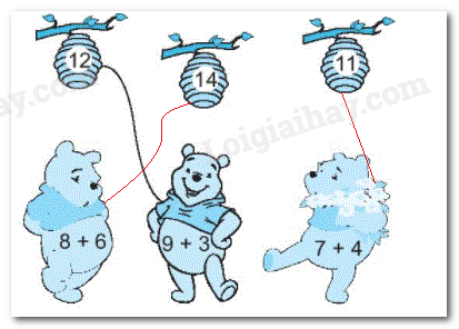 - Tính nhẩm kết quả phép tính ghi trên mỗi chú gấu rồi nối với số thích hợp.