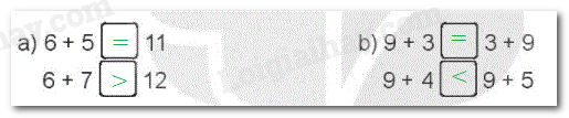 Tính nhẩm kết quả các phép cộng rồi so sánh với vế còn lại.