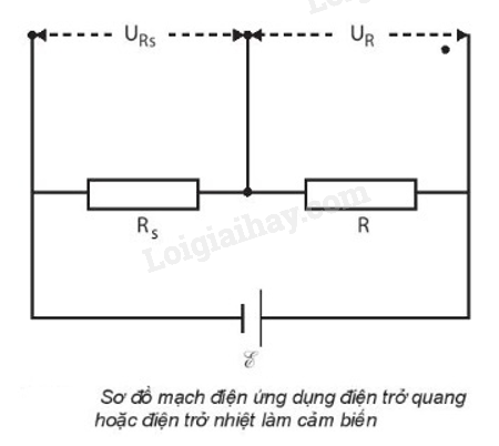 R là điện trở có giá trị giá trị xác định, RS là điện trở của cảm biến, E là nguồn điện không đổi. Khi điện trở RS thay đổi thì điện áp URs trên nó và điện áp UR trên điện trở R cũng thay đổi theo. Dễ dàng nhận thấy rằng ứng với mỗi sự thay đổi cường độ ánh sáng (đối với cảm biến điện trở quang) hoặc sự thay đổi nhiệt độ (đối với cảm biến điện trở nhiệt) sẽ có một sự thay đổi tương ứng của điện áp trên cảm biến hoặc trên điện trở R. Có thể sử dụng một trong hai điện áp này để làm tín hiệu ra cho mạch điện của cảm biến. Tín hiệu ra này có thể được sử dụng để làm tín hiệu đo lường hoặc điều khiển thiết bị thông qua mạch điện tử thích hợp.