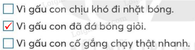 Vì sao cuối cùng cả hai đội đều muốn gấu con về đội của mình? (đánh dấu vào ô trống trước đáp án đúng)