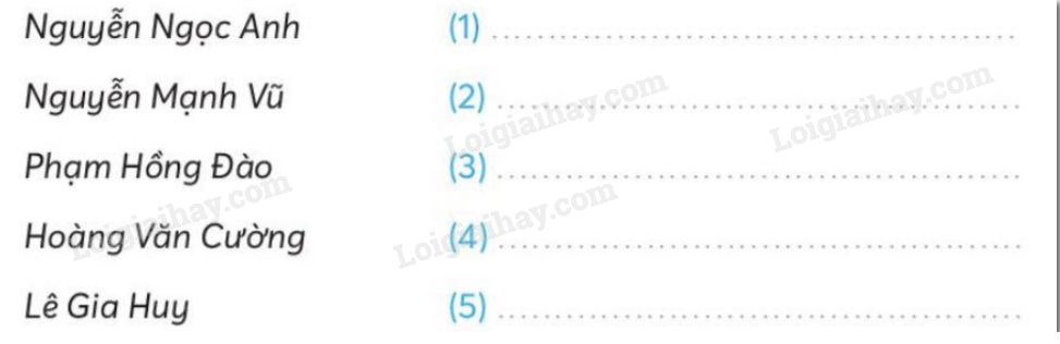 Viết tên của các bạn học sinh dưới đây theo thứ tự trong bảng chữ cái.