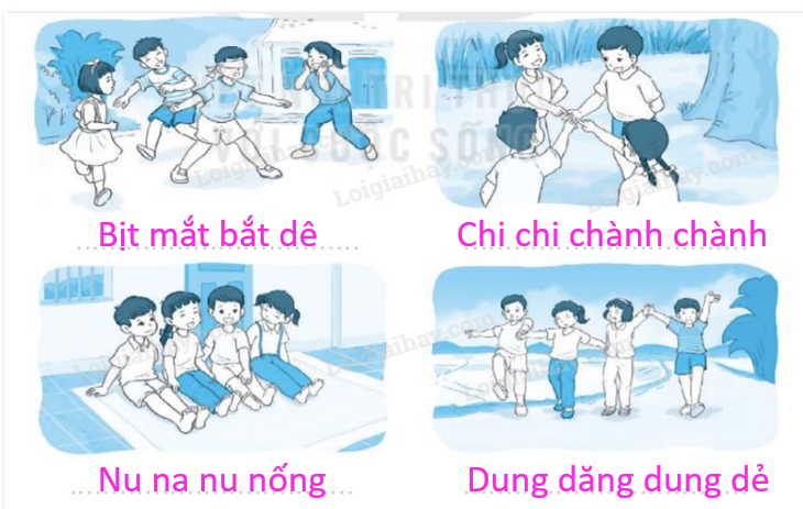 Em quan sát kĩ các bức tranh, chú ý hoạt động của các bạn trong tranh và cho biết đó là trò chơi gì?