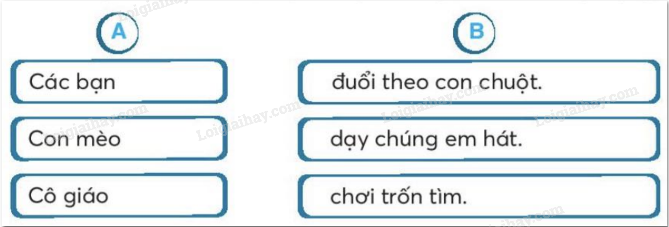 Em nối từ ngữ chỉ sự vật ở cột A với từ ngữ chỉ hoạt động thích hợp với sự vật đó ở cột B để tạo thành câu đúng.