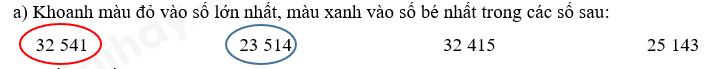 a) Khoanh màu đỏ vào số lớn nhất, màu xanh vào số bé nhất trong các số sau: