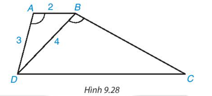 Có \(\widehat {AB{\rm{D}}} = \widehat {B{\rm{D}}C}{,^{}}\widehat {DAB} = \widehat {DBC}\)