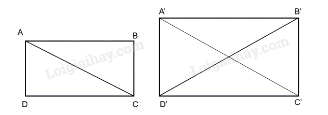 b) Nếu A'B' = 2AB và diện tích hình chữ nhật ABCD là 2m2 thì diện tích hình chữ nhật A'B'C'D' là bao nhiêu