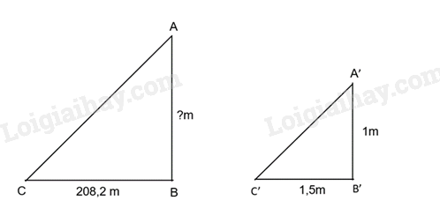 Để tính được chiều cao gần đúng của kim tự tháp Ai Cập, người ta nắm 1 cây cọc cao 1m vuông góc với mặt đất và đo được bóng cây cọc trên mặt đất là 1,5m. Khi đó chiều dài bóng của kim tự tháp trên mặt đất là 208,2 m. Hỏi kim tự tháp cao bao nhiêu mét?