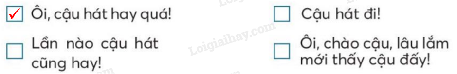 Đánh dấu vào ô trống trước câu thể hiện sự ngạc nhiên của em khi lần đầu tiên được nghe một bạn hát rất hay.
