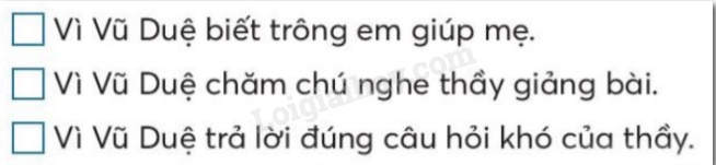 Vì sao cậu bé Vũ Duệ trong truyện Cậu bé ham học được thầy khen? (đánh dấu vào ô trống trước đáp án đúng)