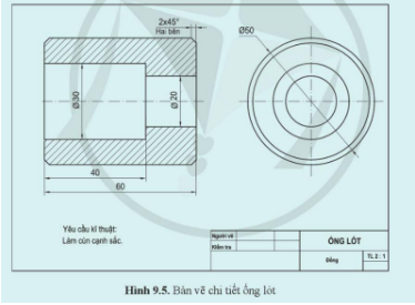 Hãy lập quy trình công nghệ gia công chi tiết ống lót hình 9.5.