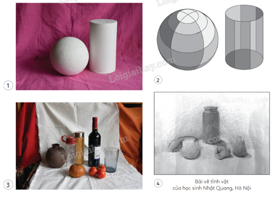 Em hãy thực hiện một bức vẽ tĩnh vật có dạng khối trụ và khối cầu.